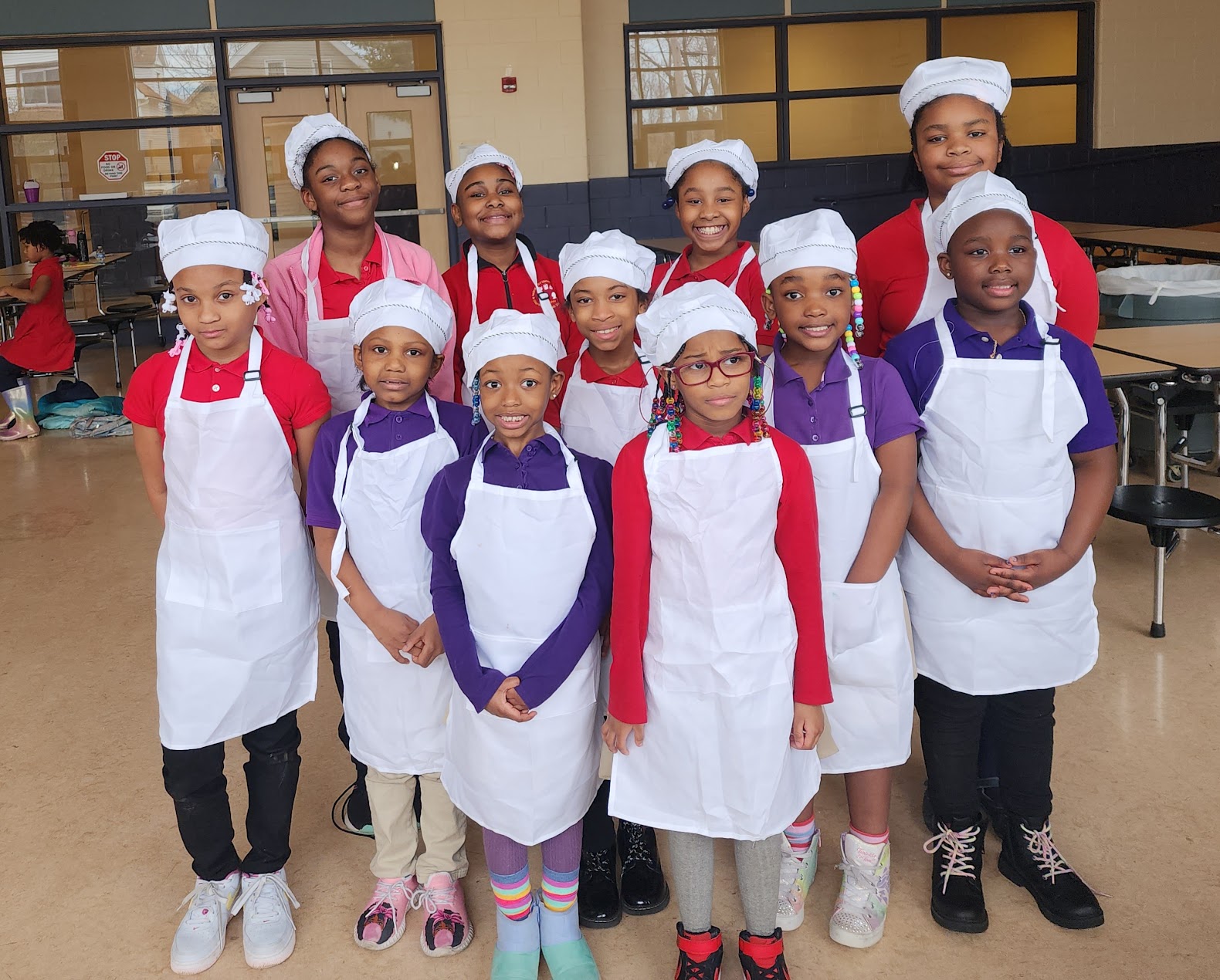 Hair MUST be secured with a hair net AND chef C.A.P. when in the kitchen and dining area.
